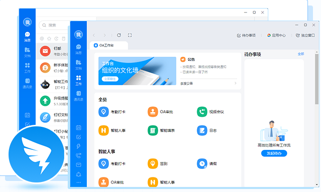 钉钉电脑版(Ding Talk)是阿里巴巴集团打造的企业级智能移动办公平台, 引领未来新一代工作方式, 将陪伴每一个企业成长, 是数字经济时代的企业组织协同办公和应用开发平台, 提供免费通话, 移动考勤, 流程审批, 通讯录管理等OA应用, 助力企业快速进入智能移动办公。